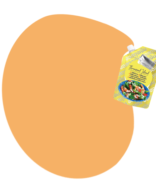 น้ำสลัดสีส้มอ่อนสวยงามจากมะเขือเทศและหอมหัวใหญ่ผสมเครื่องเทศอื่นๆมากมาย และมีส่วนผสมของน้ำมันสกัดเย็นทั้งเชิงเดี่ยวและเชิงซ้อนรสชาติหอมอร่อย เหมาะกับผักสลัดและผักนึ่ง